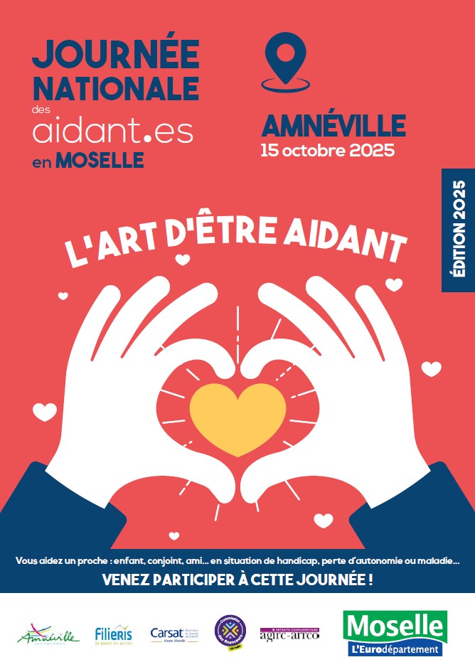 À l’occasion de la journée nationale des aidants, le CCAS d’Amnéville, le Département de la Moselle et Filieris s’unissent pour organiser une journée d’information, de solidarité et de bien-être destinée aux personnes qui accompagnent au quotidien un proche malade, en situation de handicap ou en perte d’autonomie, le 15 octobre 2025 à la salle Maurice Chevalier.